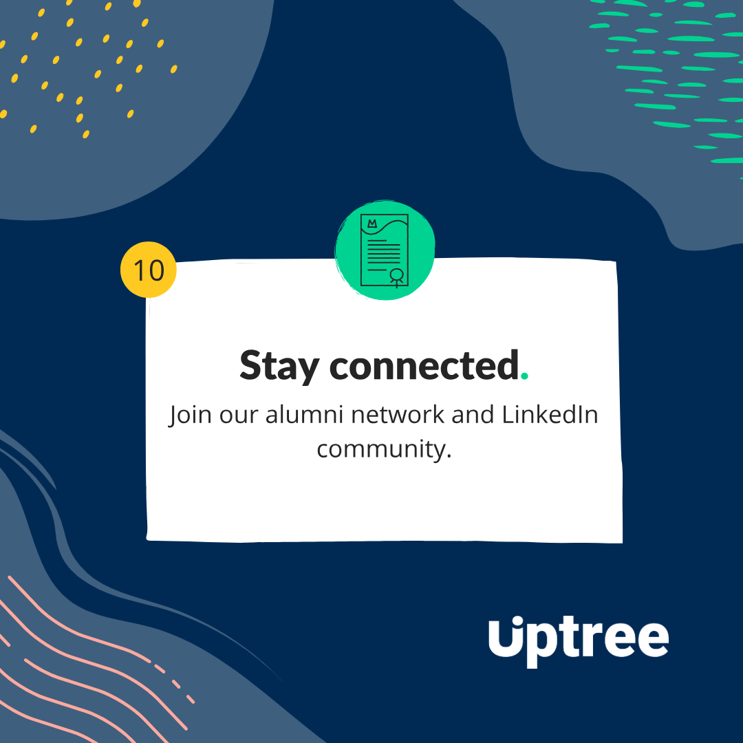 There are ten stages in your journey with Uptree; from attending a school workshop/assembly right through to joining our alumni network and LinkedIn community. Each stage is outlined in the images to the left.